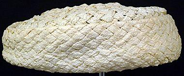 | museoesine: Päähine, naisen:kesähattu, punoshattu |