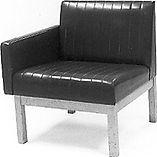 Yhdellä käsinojalla varustettu nojatuoli. Suoralinjainen. Pystyraidoitus. Nojatuoleja voidaan yhdistää esim. lehtitelineeseen tai kukkalaatikkoon asettamalla se nojatuolien keskelle, jolloin muodostuu sohvamainen kokonaisuus.