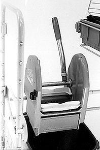 Siivousvaunuun tai sankoon kiinnitettävä moppipuristin. Moppipuristimessa kaksi valkoista levyä, joita liikutellaan metallisen varren avulla. Vedettäessä vartta eteen- ja alaspäin levyt sulkeutuvat, liikkuvat alaspäin ja moppi puristuu kuivaksi pohjaa vasten. Vedet valuvat pois pohjan reikien kautta.