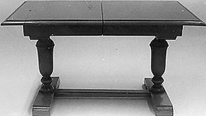 Suorakaiteen muotoinen, kaksijalkainen pöytä. Kansi profiloitu. Päissä kookkaat uurnamaiset jalat, jalkojen alla tukirakenne. Kannen alla irtonainen jatkolevy, joka kiinnittyy tappien avulla kanteen.