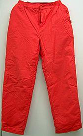 Kevyttoppahousut, joissa lahkeissa kiilamainen levennys, siinä tarranauhakiinnitys. Molemmin puolin upotetut vetoketjutaskut. Keskellä edessä veteketjuhalkio, vyötärökaitale, vyölenkit ja sivuilla vyötärökaitaleessa kuminauha. Vuori ja ohut vanu.