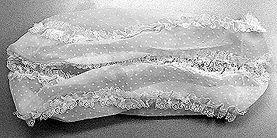 Suorakaiteen muotoisen laatikon suojus, joka päältä keskeltä ja päädyistä avoin. Avoimen reunan molemmin puolin ja päällikulmissa pitsipoimutus.