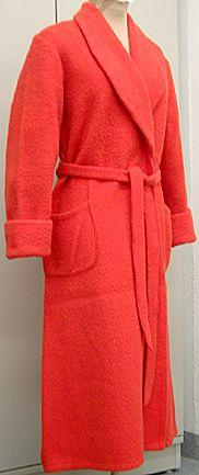 Toiselta puolelta huovutetusta kudeneuloksesta saumattu aamutakki, jossa leveäkäänteinen shaalikaulus. Hihojensuissa leveät kaksinkertaiset käänteet. Kiinnitys irrallisella solmittavalla vyöllä. Molemmin puolin pyöreäkulmaiset päälitaskut.