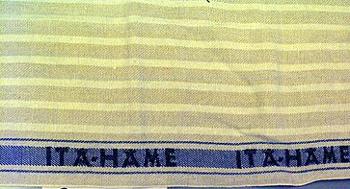 Suorakaiteen muotoinen pellavapyyhe, jossa toisella pitkällä sivulla ripustuslenkki