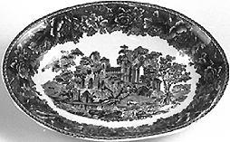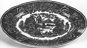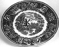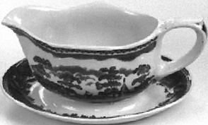 Lautanen,matala,23,5 cm, 7 kpl: matala lautanen. Lautasen reuna pykämäisesti aaltoileva. Matala jalkarengas. Sisäreunaa kiertää ohut häränsilmänauha. Sen alapuolella sinisellä pohjalla kookkaita kukkia. Lautasen keskellä maisema-aihe: etualalla mies purjeella varustetussa veneessä, taustalla vuoria, vasemmalla kookas puu, oikealla rakennus. Kahvikupin aluslautanen,14 kpl: reuna pykämäinen. Sivut kaartuvat ylöspäin. Sisäreunaa kiertää ohut häränsilmänauha. Sen alapuolella sinisellä pohjalla kookkaita kukkia. Keskellä syvennys kahvikuppia varten. Ulkopinta koristelematon. Lautanen, syvä, 23,5 cm,24 kpl: syvä lautanen. Lautasen reuna pykämäisesti aaltoileva. Matala jalkarengas. Lautasen sisäreunaa kiertää ohut häränsilmänauha. Sen alapuolella sinisellä pohjalla kookkaita kukkia. Keskellä maisema-aihe: etualalla vene, jossa on kolme henkilöä, taustalla oikealla rakennuksen edessä vesiratas. Rakennuksesta johtavaa siltaa pitkin kulkee henkilö säkki selässä. Lautanen,matala, 19,7 cm,9 kpl: matala lautanen. Lautasen reuna pykämäisesti aaltoileva. Matala jalkarengas. Lautasen sisäreunaa kiertää ohut häränsilmänauha. Sen alapuolella sinisellä pohjalla kookkaita kukkia. Keskellä maisema-aihe: etualalla rannalla istuu mies onkivapa kädessään, taustalla tuulimylly. Suurempi paistivati, soikea: vadin reuna pykämäisesti aaltoileva. Matala jalkarengas. Sisäreunaa kiertää ohut häränsilmänauha. Sen alapuolella sinisellä pohjalla kookkaita kukkia. Keskellä maisema-aihe: etualalla karjaa ja kolme miestä keppien kanssa, taustalla tiilisiä rakennuksia osittain puiden peittämänä. Pienempi paistivati, soikea: vadin reuna pykämäisesti aaltoileva. Matala jalkarengas. Sisäreunaa kiertää ohut häränsilmänauha. Sen alapuolella sinisellä pohjalla kookkaita kukkia. Keskellä maisema-aihe: mies veneessä ongella, taustalla tiilinen rakennus, vuori ja puita. Kulho, soikea: soikea kulho. Reuna pykämäisesti aaltoileva. Matala jalkarengas. Sisäreunaa kiertää ohut häränsilmänauha. Sen alapuolella sinisellä pohjalla kookkaita kukkia. Keskellä maisema-aihe: karjaa juomassa rannalla, taustalla osin puiden peittämä rakennus. Liemimalja ja kansi: suun reuna ja jalkarengas pykämäisesti aaltoileva. Kaarevakylkinen. Suun reunassa ja jalkarenkaassa kaheahko kukka-aiheinen nauha. Edessä ja takana maisema-aihe: kaksi hahmoa, toinen istuu puunrungon päällä. Taustalla vettä, puita, tiilinen rakennus ja vuoria. Kansi ylöspäin kohoava, kellomainen. Sen reunassa häränsilmänauha ja sinisellä pohjalla kookkaita kukkia. Kannen koristeena maisema-aihe. Nupin päällä kukka. Kastikeastia: kiinteällä aluslautasella varustettu kastikeastia. Astian ja lautasen reuna pykämäisesti aaltoileva. Kaareva kädensija. Kädensijan alaosassa kukkakoriste. Astian ulkoreunaa kiertää ohut häränsilmänauha. Kyljissä maisema-aihe: keskellä purjevene, vasemmalla rakennus, oikealla kirkko. Lautasen sisäreunassa sinisellä pohjalla kookkaita kukkia. Kahvikuppi, 7 kpl: maljamainen kahvikuppi. Varustettu matalalla jalkarenkaalla. Kädensija kaartuva, koristelematon. Sisäreunaa kiertää ohut häränsilmänauha. Sen alapuolella sinisellä pohjalla kookkaita kukkia. Kahvikupin kylkiä kiertää maisema-aihe: mökki, tornilla varustettu tiilinen rakennus, vuoria, purjevene ja rakennus.