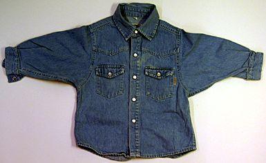 Lantiolle ulottuva farkkupusero. Teräväkulmainen paitakaulus, edestä avoin, painoinappikiinnitys. Hihansuissa mansetit, painonappikiinnitys. Olkatikkaukset. Molemmin puolin kannelliset rintataskut, joissa painonappikiinnitys.