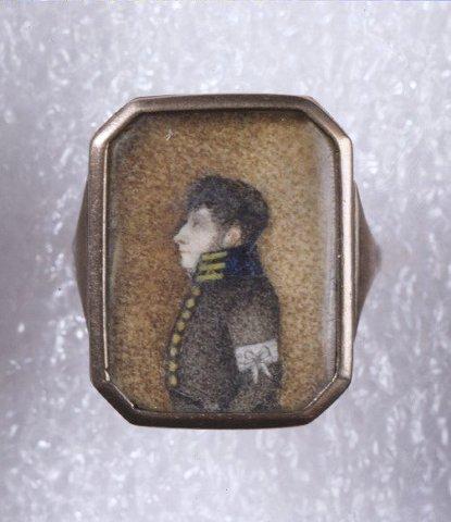 | museoesine: sormukseen kiinnitetty miniatyyri, tuntematon mies |