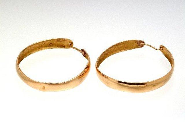 Pari kultaisia korvakoruja, yksinkertaiset pyöreät vanteet. Paino 9 gr.