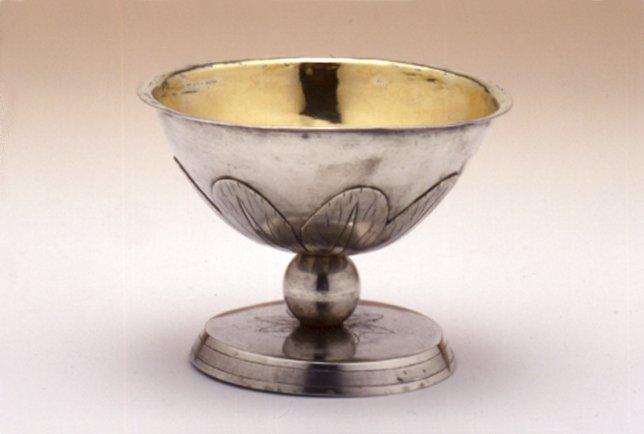 Jalallinen, pyöreä. Pallojalan kannattama maljamainen astia, jossa kapea sileä kaulus. Jalkalevy pyöreä, reuna viistetty. Jalkalevyn ja astian pohjaan kaiverrettu lehtiruusuke.