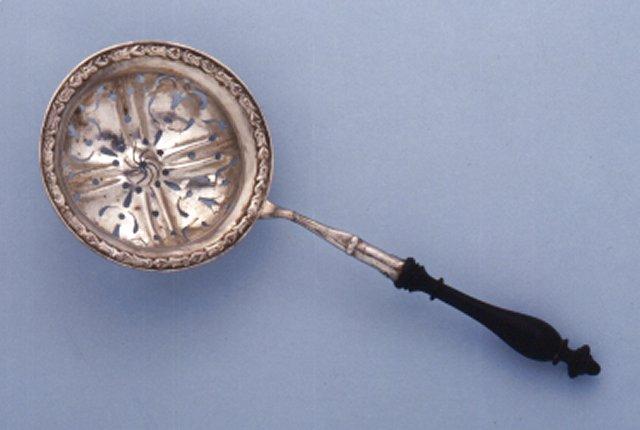 | museoesine: sirotinlusikka, tea strainer, teesiivilä |