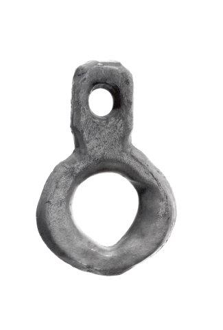 Suora varsi kapenee hieman silmukan juuressa. Varren pää tasainen, reunat viistottu. Varressa olevan reiän halkaisija 0,7 cm. Ison silmukan alareunaan on muotoiltu loiva kärki; sama muoto toistuu myös silmukan sisällä tehden reiästä pisaramaisen. Silmukan reiän suurin halkaisija 1,8 cm.