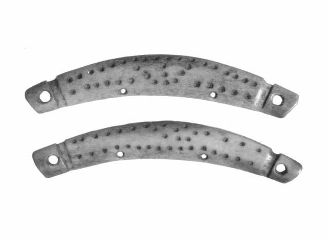 Lyhyet, sarviset, veitsenkärkipistelmin koristellut laukunleuat.