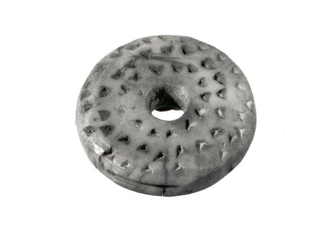 Tehty poron sarven kannasta, kolmiosyvennyksin koristettu.