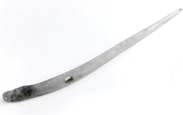 Verkonpaulomispuikko, ponsipäästä kaareva luupiikki. N. 5,5 cm ponnesta on reikä.