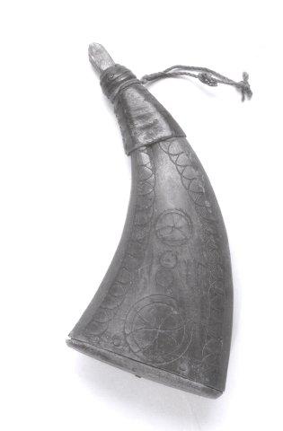 Ruutisarvi, kyljissä harpilla piirrettyjä koristeita ja vuosilukumerkintä 1811. Suu nahalla verhottu. Mahdollisesti suomalainen.
