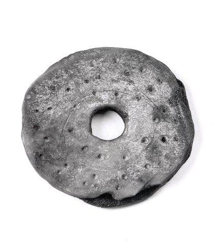 Värttinän kehrä, kömpelömuotoinen, pistein koristettu.