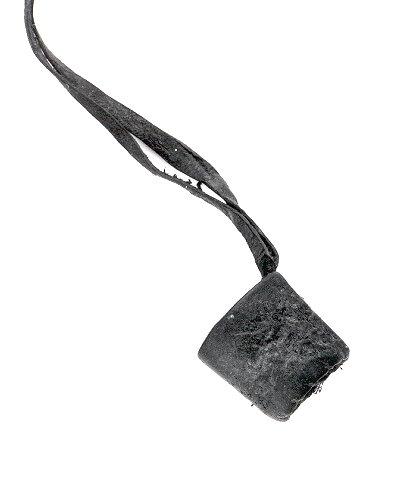 Syyrinkejä, kolme kappaletta, nahkakaistoista kierrettyjä. Yksi näistä (a) varustettu nahkanauhasta tehdyllä silmukalla.