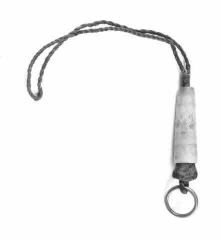 Neulikko. rihma ja neulalappu nahkaa, alapäässä messinkirengas. Neulakotana toisesta päästä hiukan leveämpi luuputki, jonka poikkileikkaus on soikea. Putki koristettu heikosti uurretuin geometrisin kuvioin; sen keskellä kirjaimet E S P.