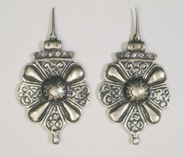 Hopeasta valetut kaksi pukusolkea, fibulaa, (berb. tizärzai, yks. tazärzit Susissa; tikhellal, yks. takhellalt Korkea-Atlaksessa), jossa on ns. shakaalinkäpäläkuvioinen ketjunkannatin. Keskustan puolipallomaisesta kohoumasta alkaa säteittäisesti kahdeksan vuoroin sileää, vuoroin ornamenttikoristeista "sakaraa". Kaksi eri tavoin kuvattua neljän ryhmää (sileä ja kuvioitu sakara) ovat kaksinkertainen viitoskuvio (khamsa), jonka on uskottu suojaavan pahalta silmältä. Yläosaan on juotettu soljen neula. Kannatin on koristettu niellotekniikalla eli lisäämällä syvennyksiin tummaa metalliseosta. Neulan rengassolki ja ketju puuttuvat. A.O.L. nro 131a