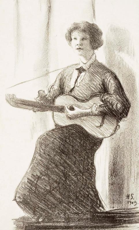 | taidegrafiikka: Kitaransoittaja (Anni Bremer) |