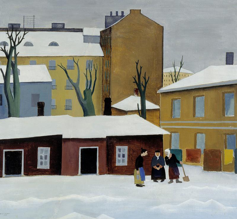 | asiasana | kerrostalot, kaupunkimaisema sekä ihmisen tekemät rakennukset osana maisemaa, conversation, dialogue; conversation piece, kotityö, lumi, aikuinen nainen, kaupunki; 'veduta', asuminen kaupungissa, laundering, suvut, linnan tai kartanon sisäpiha, talvi; 'Inverno' (Ripa), kotityöt, meeting, Turku, pyykinpesu, kokoukset, backyard, neighbour |