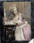| maalaus: Kirjoittava nainen, sommitteluharjoitelma II Rokokoonaista varten |