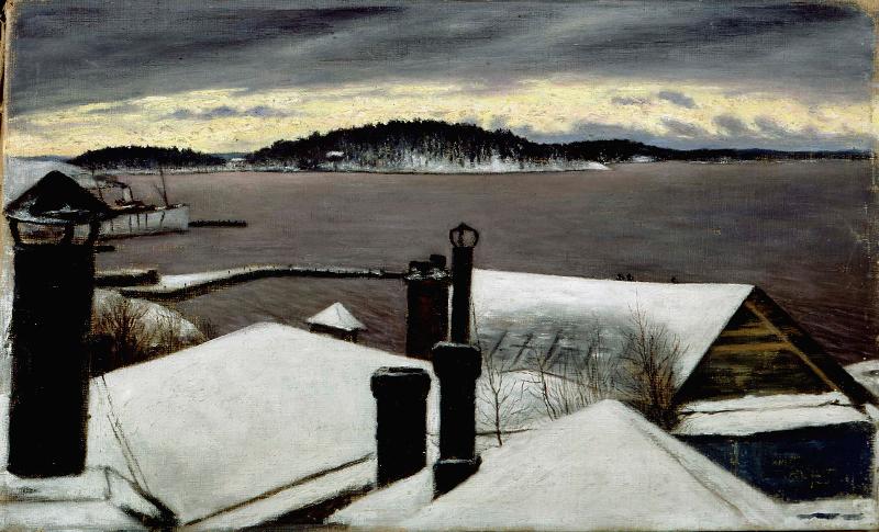 | asiasana | katto, Viipuri, selkä, savupiippu, maisema, talvi, rannat, kaupunkikuva, meri |