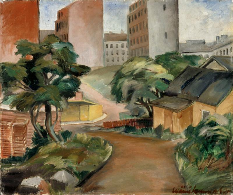 Johanneksen kir... puut, kaupunki; 'veduta', asuminen kaupungissa |