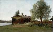| maalaus: Ukon tupa, aihe Tuuloksesta |