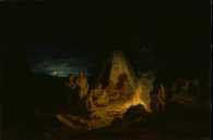 | maalaus: Lappalaisia nuotiolla |