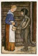 | maalaus: Emäntä ja piruparka kaksosineen |