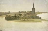 | maalaus: Maisema, jossa on kirkko |