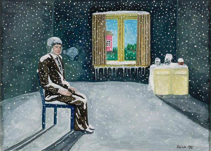 | asiasana | interiöörit, aikuinen mies, chest, coffer, surreaalinen maisema, surrealistiset näkymät, kuppi, lumi, istuva figuuri, view through a window, seasons of the year (esp. personifications); 'Stagione', 'Le quattro stagione dell'anno' (Ripa), pakkanen, Waiting, Watching, ikkuna, tuoli |