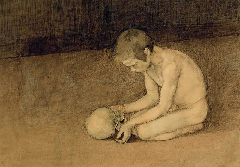 | piirustus: Poika ja pääkallo |