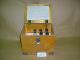 Puinen laatikko, jonka alakulmissa on metalliset vahvikkeet. Laatikossa on aukeava "läppäkansi", jossa on 2 saranaa. Kannen sivussa on lenkki, jonka saa kiinnitettyä kyljessä olevaan lukitusmekanismiin. Laatikossa on sisällä styroxi, jossa on 12 pyöreää reikää. 7:ssä on pystyssä lasinen näytepullo mustalla kumikorkilla. Pullojen kyljissä on teippiä, joihin on kirjoitettu kuulakärkikynällä. Pullojen päälle tulee toinen samanlainen reiällinen styrox. Sisäkanteen on nastoilla kiinnitetty valkoinen paperi taskun sisään, jossa on ohjeet näytemaitojen ottokerroista. Päällä on metallinen kahva ja kirjoitusta mustalla tussilla.