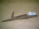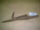 Toinen pää on litteä suorakaide, jossa on 2 reikää. Keskeltä rauta "rullalla" muodostaen putkimaisen avoimen osan. Toisessa päässä on rautainen piikki ja koukku. Pienehkö.