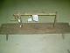 Puinen penkki, jonka molemmissa päissä kaksi jalkaa, joiden tapit tulee penkin toiselle puolelle. Penkin molemmissa päissä on ylöspäin nousevat laudat. Toinen lauta on alhaalta kolmion muotoinen, sitten siinä on neliön muotoinen osa ja yläosa muistuttaa 2 piikkistä haarukkaa. Toisen laudan alaosa on samanlainen, yläosa on soikea ja siinä on reikä keskellä. Näiden välissä on puu, joka pyörii kampea vääntämällä.