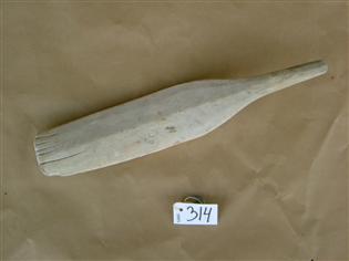 Yhdestä puukappaleesta tehty, pitkänmallinen, toisessa päässä kädensija (n. 1/3 koko pituudesta)ja toinen pää leveämpi ja lituskainen.