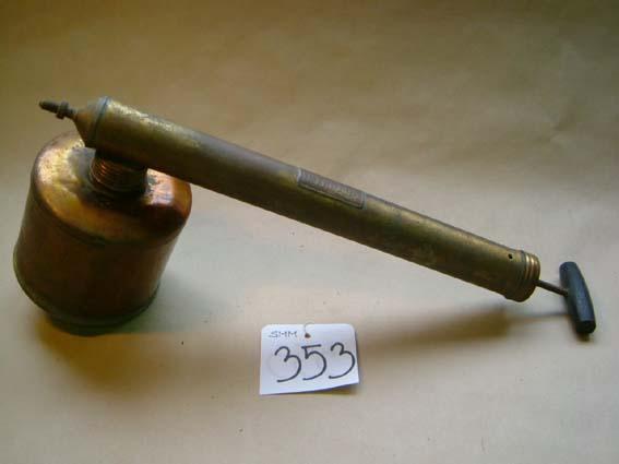 Messingin värinen lieriön mallinen säiliö, johon on kiinnitetty jengoilla putki (h=4 cm). Putkessa pumppumekanismi, toisessa päässä mäntä, jossa mustaksi maalattu puinen kädensija. Toisessa päässä säädettävä suuaukko, josta myrkky ruiskutetaan. Säiliön pohjaa juotettu myöhemmin kiinni.