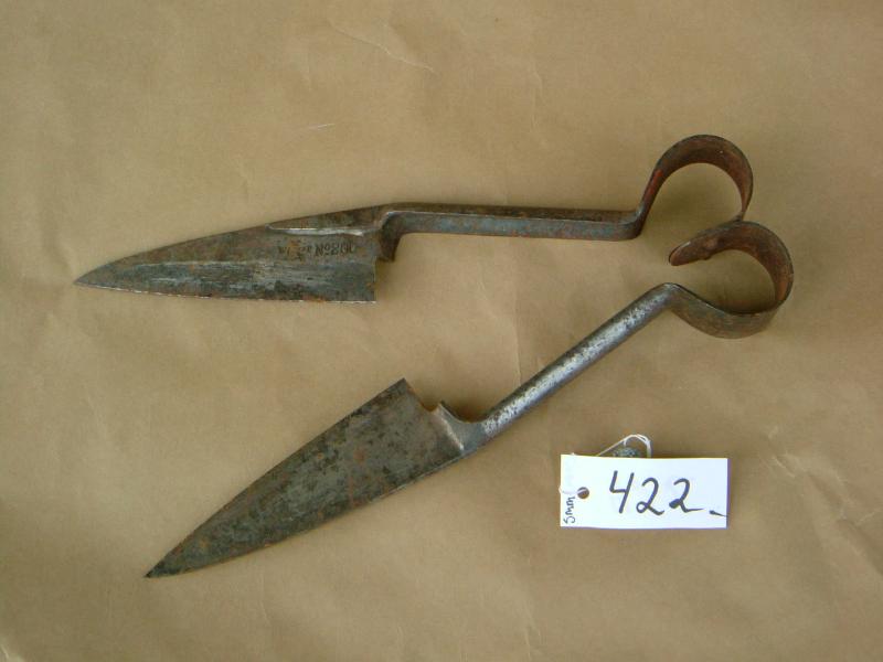 | huomiot | Viiteet ja lähteet: Eeva Mikolan muistio 11.9.2001 Luovutusasiakirja 11.9.2001, liite Rokka Pekka, Järnfors Leena, Nieminen Matti: Perinne kirja, Muurikkala: Visionääri Oy 1998.; Merkit: W X P No 200 Gaststeel Ward B Warranted; Vauriot: Ruostetta. Esine on konservoitu ja se on näyttelykelpoinen.; Lahjoittaja: Esteri (Mäkisepän tila) Koivisto; Lisatiedot: Lampaat kerittiin 2-3 kertaa vuodessa. Syksyllä keritty villa oli parasta. Lampaat joko pestiin ennen keritsemistä tai sitten keritty villa pestiin. Tämän jälkeen villa karstattiin. Karstaus oli naisten työtä. Karstoilla villa pehmitettiin ja puhdistettiin, villan paakut saatin pois ja kuidut asettuivat saman suuntaisiksi. Työ piti tehdä kunnolla, jotta saatiin tasaista laatua. (Rokka, Järnfors, Nieminen 1998, 82.) |