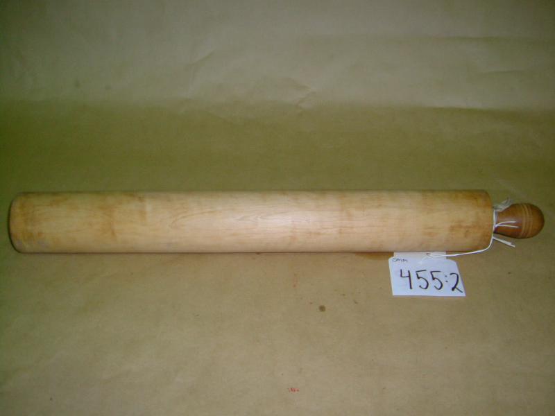 Tasapaksu pyöreä puu, jonka toisessa päässä pyöristetty kahva. Kahvaan tehty urat ja se levenee ylöspäin. Muistuttaa kaulinta, josta puuttuu toinen kädensija.