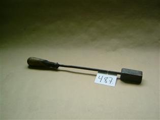 Sorvaamalla tehty puinen kädensija, joka pyöristetty ja alaspäin levenevä. Kapeammassa päässä rautalenkki. Kädensijasta lähtee rautaputki, jonka toisessa päässä rautainen suorakaiteen muotoinen osa. Päässä kirjaimet YA, jotka polttaessa merkin lehmään kääntyneet kirjaimiksi AY.