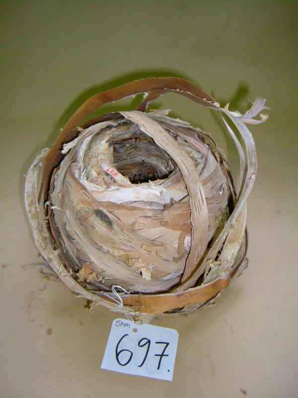 | huomiot | Viiteet ja lähteet: Eeva Mikolan muistio lahjoituksesta 11.9.2001 Vuorela, Toivo: Kansanperinteen sanakirja 1981. Kautovaara, Pekka: Kättentöitä; Keuruu: Otava, 2002.; Vauriot: Lähtenyt aukeamaan.; Lahjoittaja: Esteri (Mäkisepän tila) Koivisto; Lisatiedot: Tuohi on ollut omavaraistaloutemme monipuolinen tarveaine. Tuohi säilyi ja säilytti muotonsa. Sitä oli helppo käsitellä, se oli halpaa kevyttä ja kestävää. Tuohityön ammattilaisia ei synytynyt, kukin teki omat käyttöesineensä. Tuohi korvasi aikanaan monia nykyajan aineita. Tuohta voi kiskoa ympäris vuoden, mutta helponta se on ns. tuohenlähdön aikaan juhannuksen molemmin puolin. Tuohi irroitettiin levyinä tai nauhoina. Tuohta voitiin varastoida vuosiksi. Kasvupaikka ratkaisi tuohen laadun. (Kautovaara 2002, 91-91.) |
