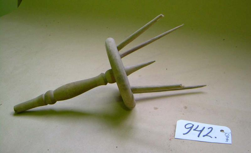 | käyttötapa | Pellavakuontalo asetettiin tähän haarakkeiseen pidikkeeseen kehräämistä varten |
