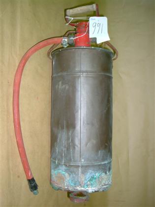 Ruskea peltinen lieriö. Alareunassa kuviollinen metallilenkki, pohjassa punaista maalia. Päällä puolipyöreä avattava kansi, josta laitetaan vesi sisään. Vieressä punainen metallista ja puusta oleva kahva, josta lähtee kumiletku.