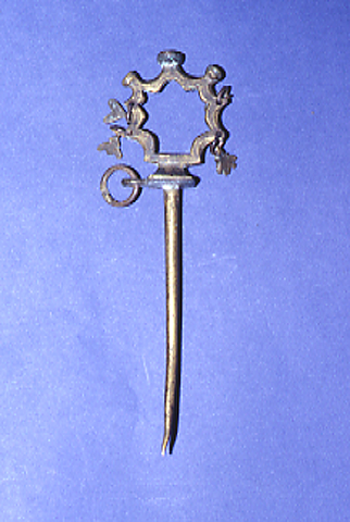 Toisen pään muodostaa yhdeksänkulmainen tähtimäinen rengas. Kolme ylintä sakaraa kuvien kantoja, keskimmäinen soikea, reunimmaiset pyöreitä. Alimmissa sakaroissa 4 riipusta, 2 sydäntä ja 2 hanhenjalkaräpylää. Renkaan ja puikon yhtymäkohdassa neliömäinen levy, jonka sivussa reikä, jossa on rengas. Kolmessa ylimmässä sakarassa on ollut keskimmäisessä punainen ja reunoissa vihreät kuvat.
