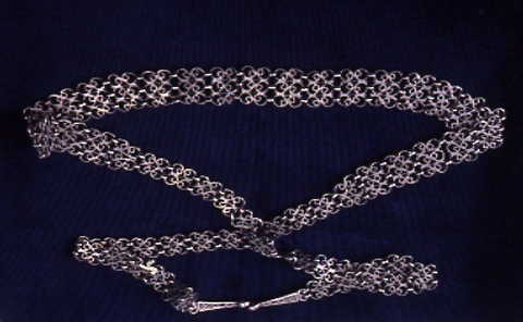 | huomiot | Tekniikka: taivutetusta hopealangasta kokoonpantu, valetut ketjunpäät; LuokitusOCM: TAITEET; RAAKA-AIN. JALOSTUS; KEHON HOITO |