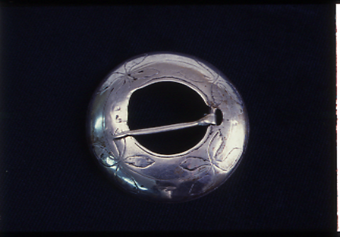 Pyöreä, kupera, leveäkehäinen solki, jonka keskellä reikä. Paljin kiinnitetty sisäreunaan. Koristekuviossa kuusi suurta nelilehtistä lehvää, jotka kiertävät soljen kehää.