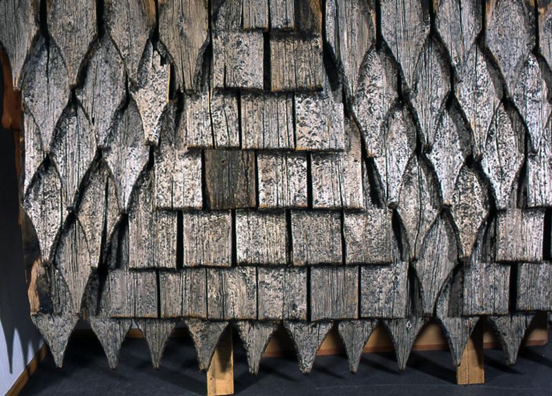 Yksityiskohta kirkon paanukaton fragmentista.