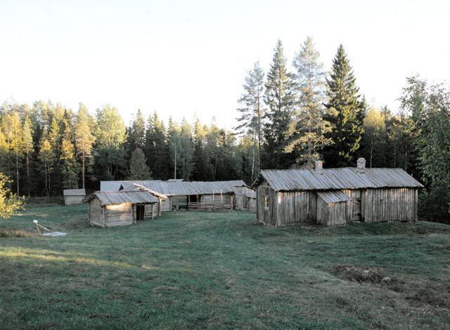 | diapositiivi: Myllymäen Torppa,pihapiirin rakennuksia |